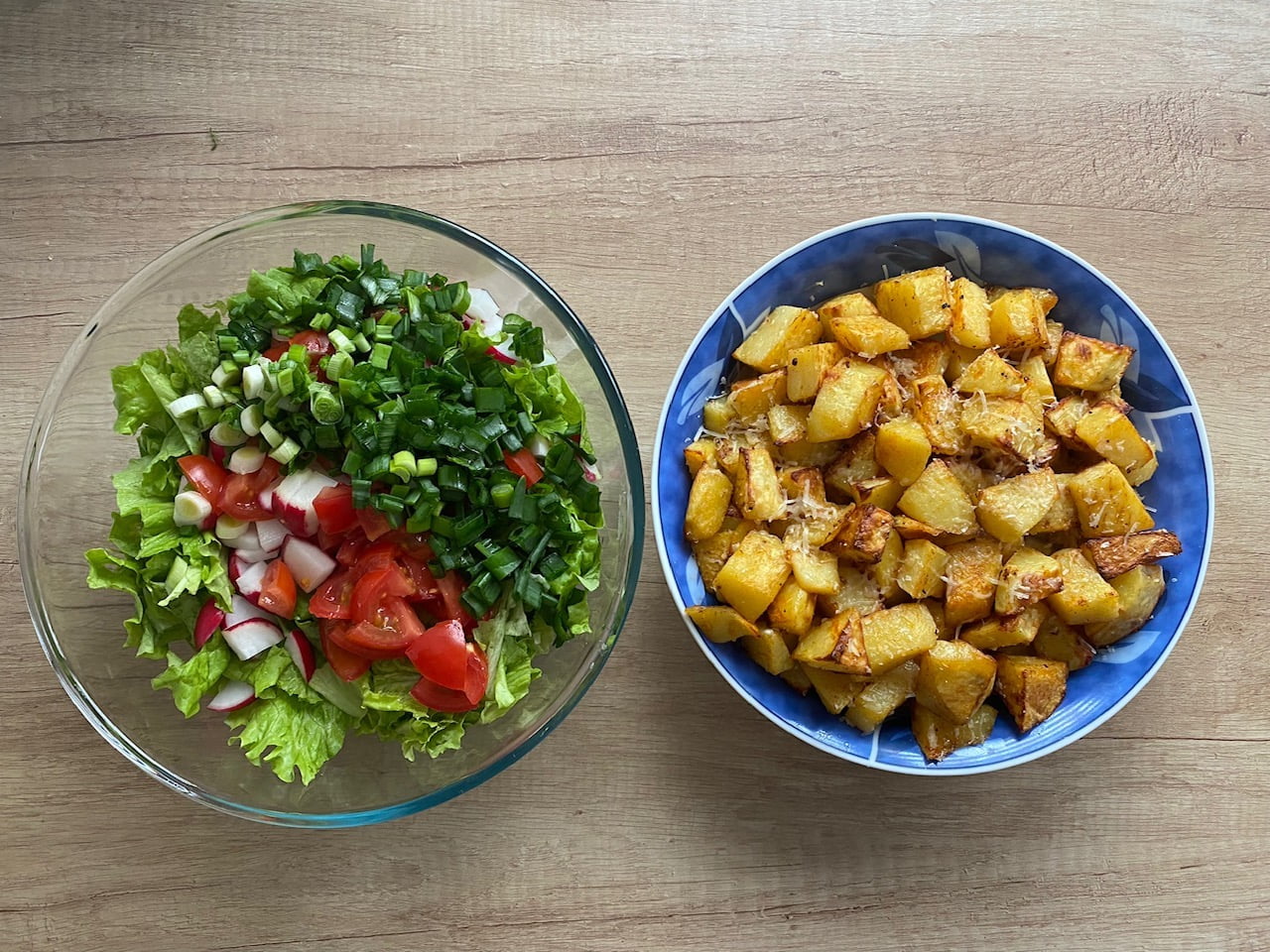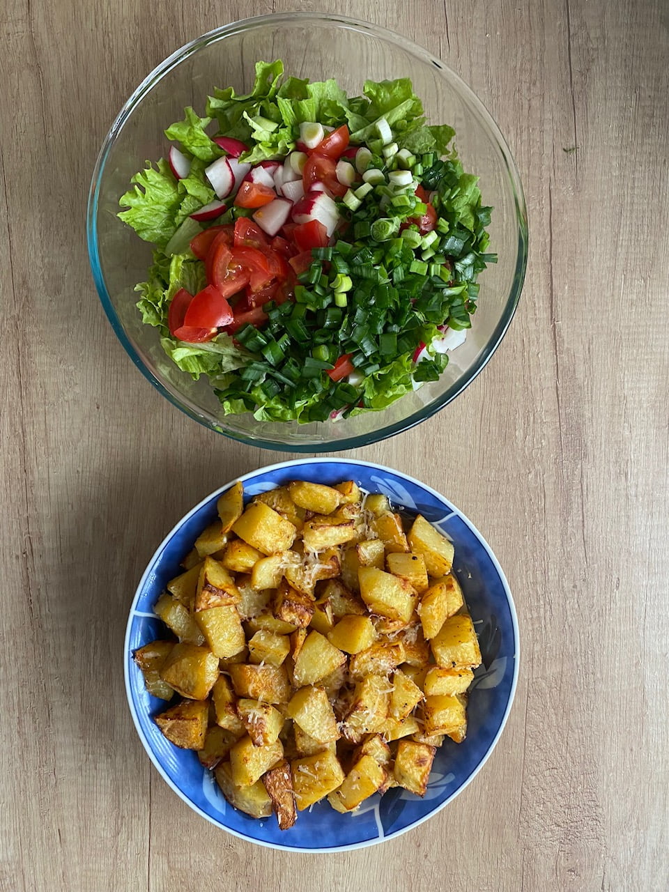 Simplitate și gust de exceptie. Așa definesc eu cartofii la cuptor cu salată de primăvară.