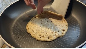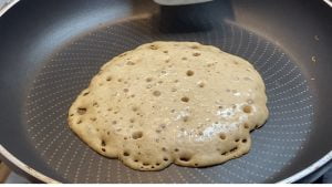 - Începem apoi să coacem clătitele. Vom vedea că în câteva secunde vor începe să apară bulele de aer.
