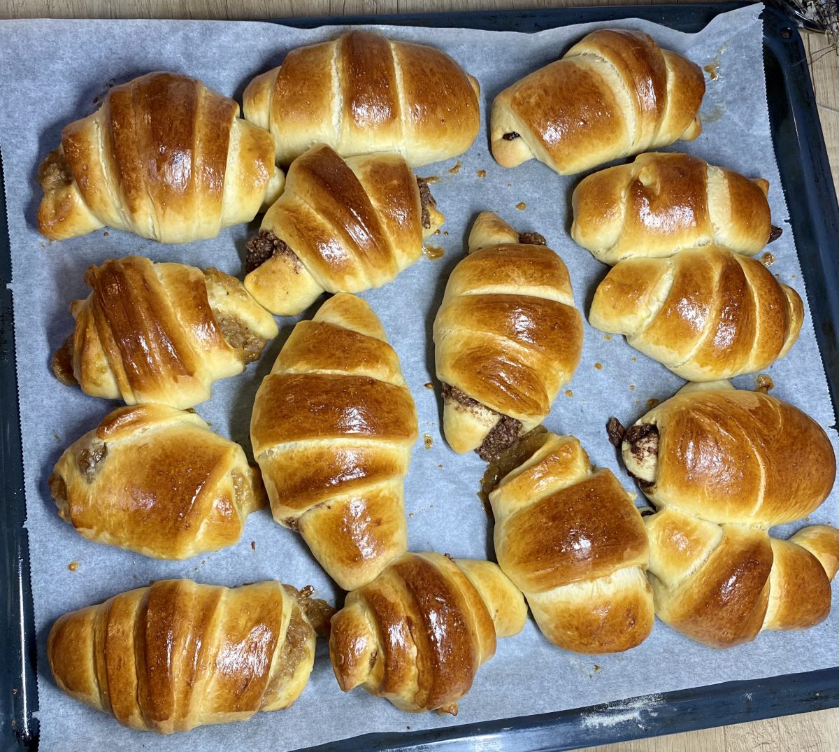 Dacă preferați cornuri mai dulci, vă sfătuiesc să puneți cam 130 grame zahăr brun și eventual, să le umpleți cu un gem mai dulce.