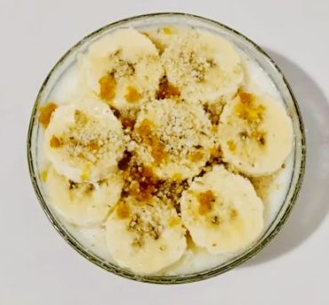 Acest gris cu lapte, miere nuci si banane este un desert usor de facut si foarte gustos.