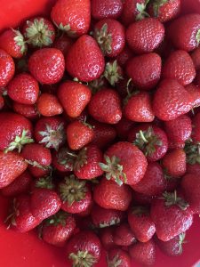 • Pregătim căpșunile: le spălăm, le curățăm și le îndepărtăm frunzulițele.