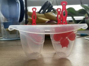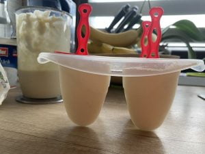 - Dacă doriți o înghețată similară cu cea de la gelaterie, ca textură, atunci banana și restul de fructe trebuie să fie înghețate în prealabil (tăiate felii/cuburi și înghețate).Eu am făcut o dată cu fructe de pădure și am servit-o imediat și o dată cu mango și am înghețat-o în forme.Dacă optați pentru varianta de înghețată în forme, pentru a le putea scoate din forme, după ce au înghețat, țineți-le câteva secunde sub jet de apă caldă.Eu abia am reușit să fac o poză că a și dispărut înghețata. E bucuria copiilor, făra dubiu.
