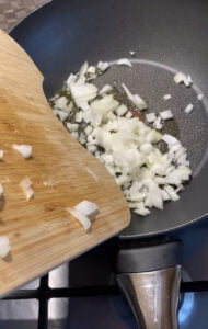 - Între timp, tocăm ceapa și o călim în puțin ulei( nu rumenim, doar înmuiem ceapa)