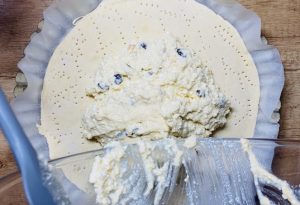 - Apoi, am pus amestecul de bânză peste aluatul foietaj.