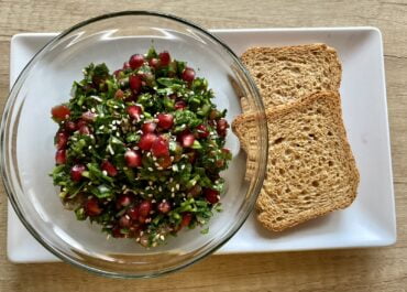 Tabouleh sau salată de pătrunjel. Este o salată care ține de foame și are extrem de multe vitamine și foarte puține calorii.