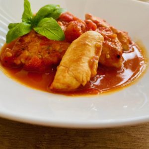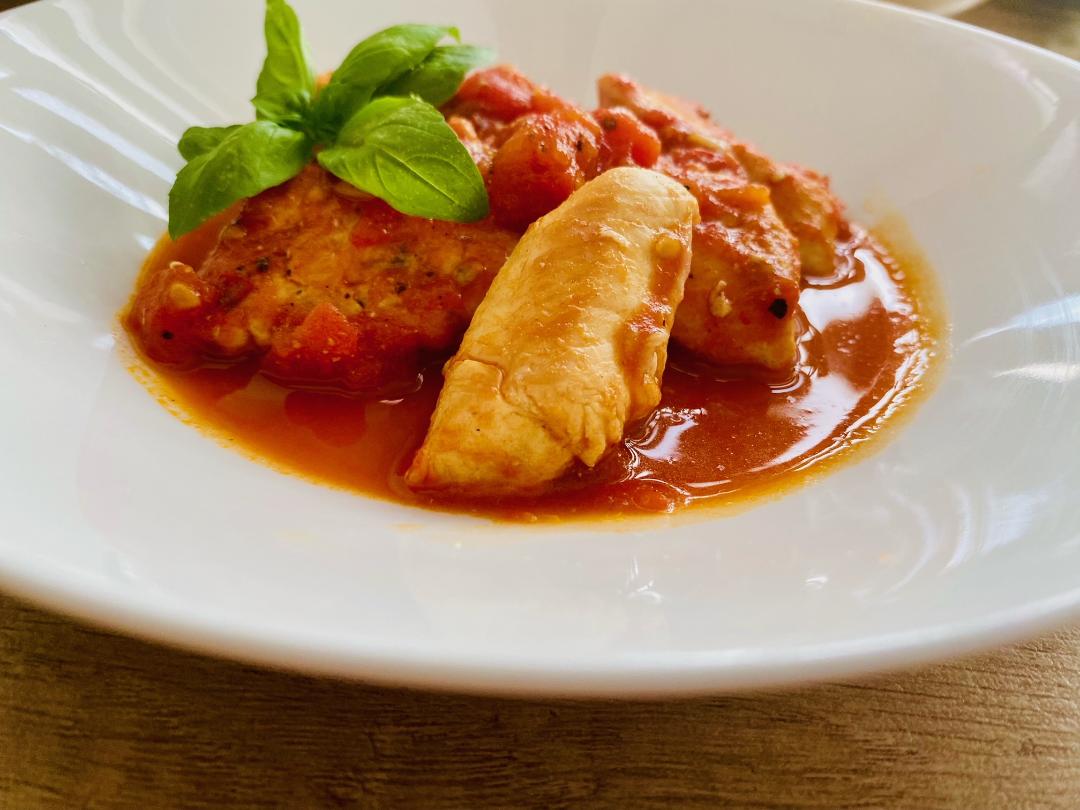 - Din aceste cantități am obținut două porții delicioase și încântătoare de piept de pui la tigaie cu sos și busuioc.