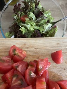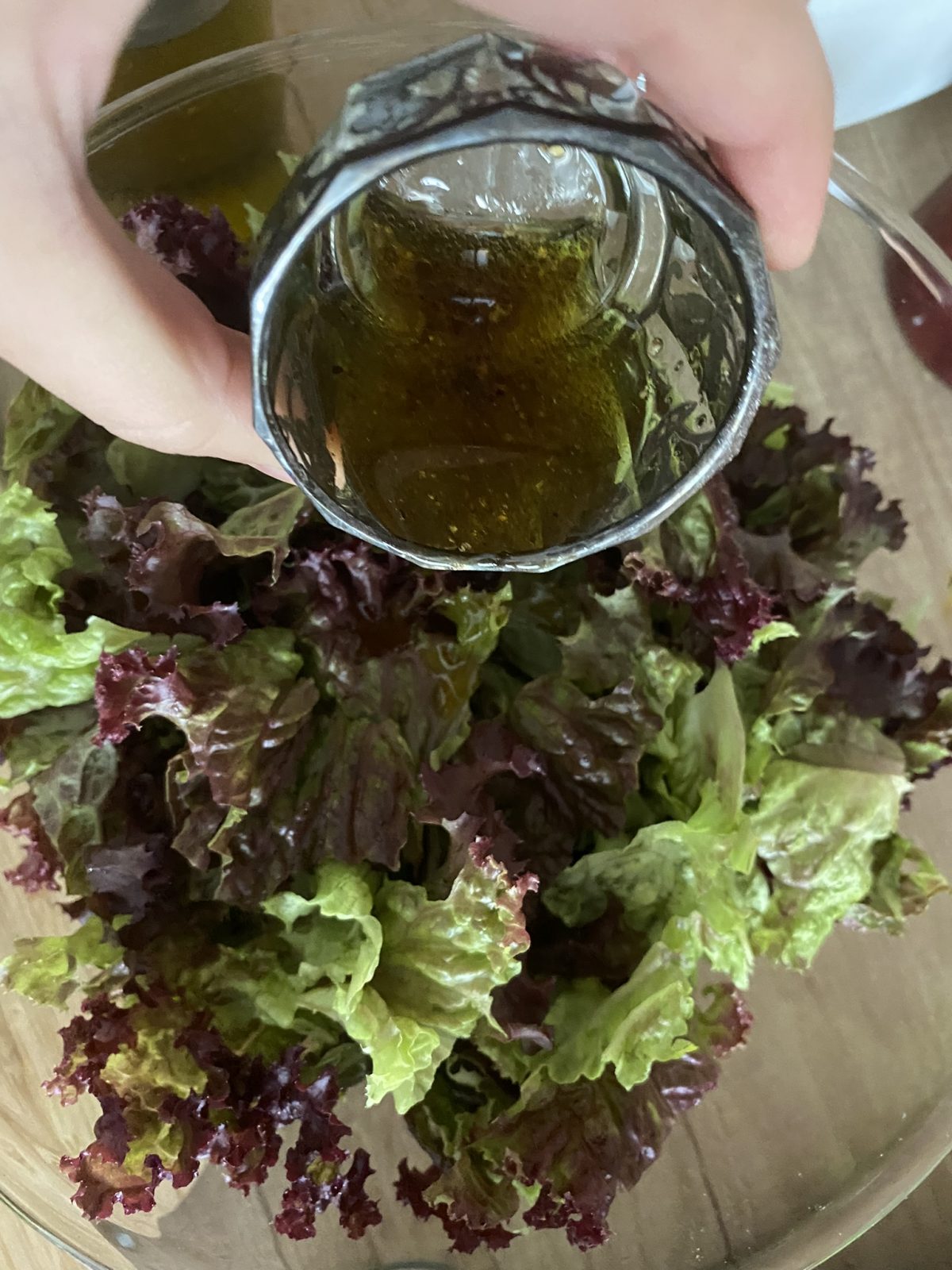 - Punem dressingul peste frunzele de salată