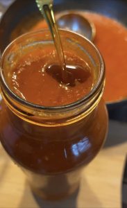 - Am pus rapid capacul și am întors imediat borcanul cu capacul în jos. Pentru că sosul aste foarte fierbine și pentru că și borcanele sunt fierbinți, veți auzi cum se sigilează capacul cand faceți întoarcerea. Găsiți o poziție de siguranță, sa nu se răstoarne și lăsați-le așa până când se răcesc.
