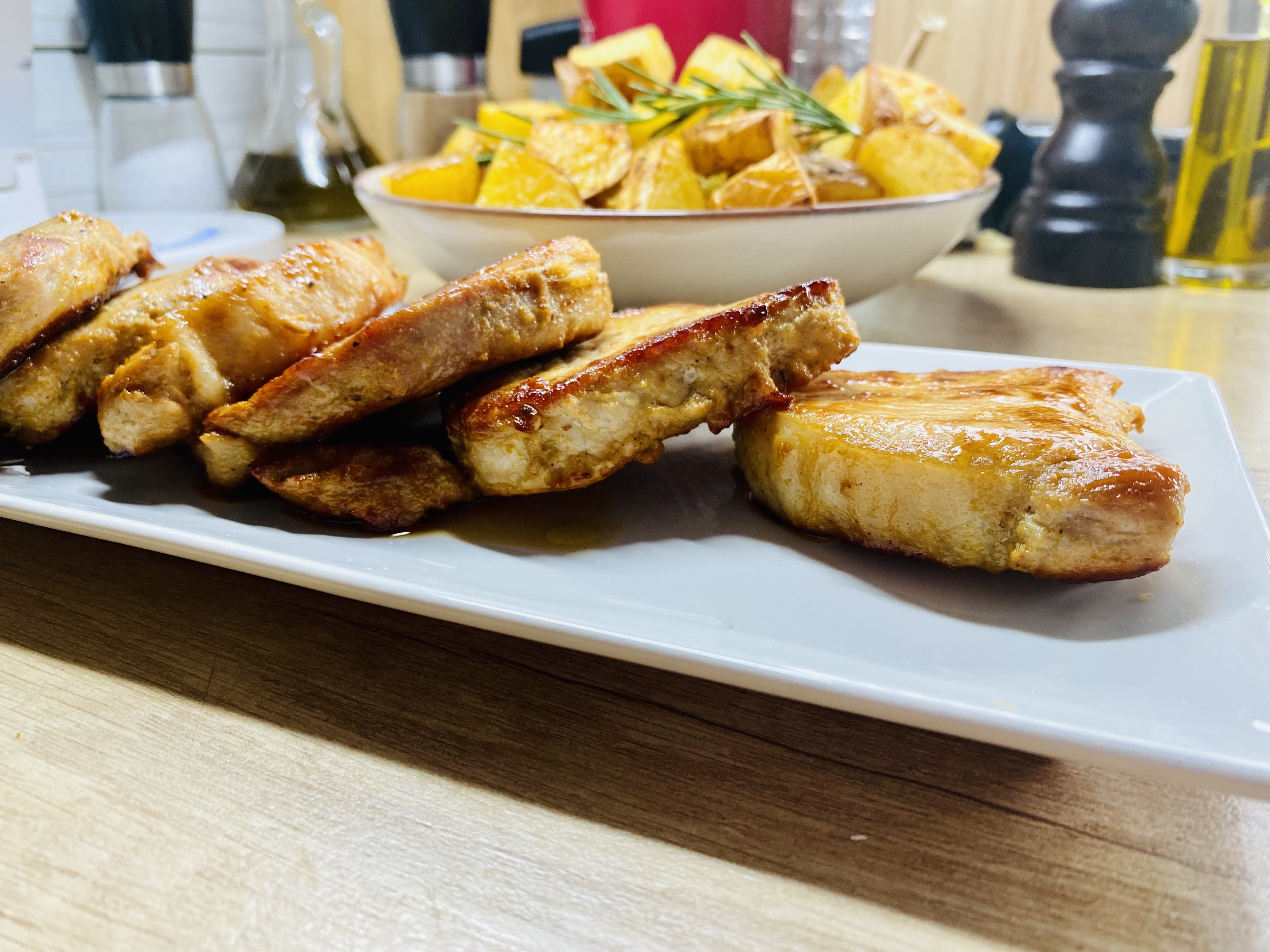 Dragilor,Vă prezint astăzi o friptură bine rumenită dar suculentă, ușor și rapid de făcut: cotlet de porc la tigaie super delicios.Acest cotlet la tigaie iese spectaculos atât ca aspect cât și ca textură și gust.Gătirea acestuia așa, în prealabil marinat și apoi gătit cu capac, îi conferă acestuia o savoare deosebită.Este absolut încântător cum poți face o friptură la tigaie dar să ai rezultat ca de friptură la cuptor.Eu vă recomand să încercați rețeta mea simplă 100% rapidă și delicioasă de cotlet la tigaie.De când am descoperit această rețetă, mă asigur mereu că am în congelator și câteva felii de cotlet, puse fiecare în câte o pungă.Congelate individual, îți oferă ocazia să scoți și să gătești atât cât ai nevoie. În plus, când sunt congelate individual feliile de cotlet îngheață mai rapid și se dezgheață mai rapid. ;)De la mic la mare, toată lumea savurează mereu această friptură de cotlet la tigaie.Chiar și băiețelul meu, care multă vreme nu a fost pasionat de fripturi, mânâncă cu plăcere acestă friptură de cotlet de porc la tigaie.Eu vă încurajez să încercați.De această dată, am servit acest cotlet cu Carofii wedges la cuporAr putea să vă placă și rețeta mea de Friptură înăbușită de copăneleVezi și rețeta mea super delicioasă de Friptură de curcan la cuptor cu sos de ciuperci