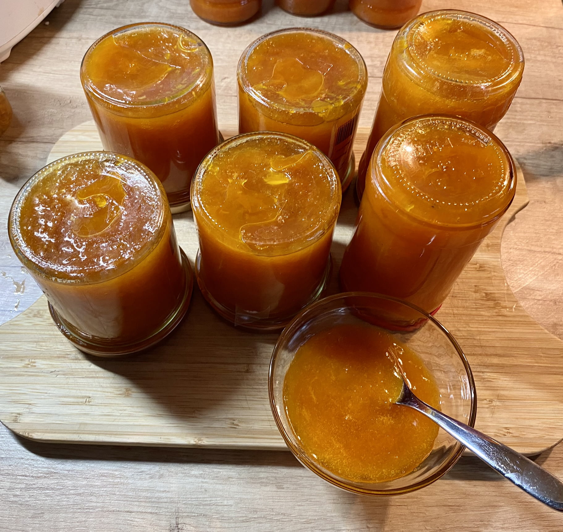 când gemul este gata( 103-105 grade) îl punem imediat în borcanele proaspăt sterilizate, punem capacul și le întoarcem rapid cu capacul în jos. Vor rămâne așa până când se vor răci.