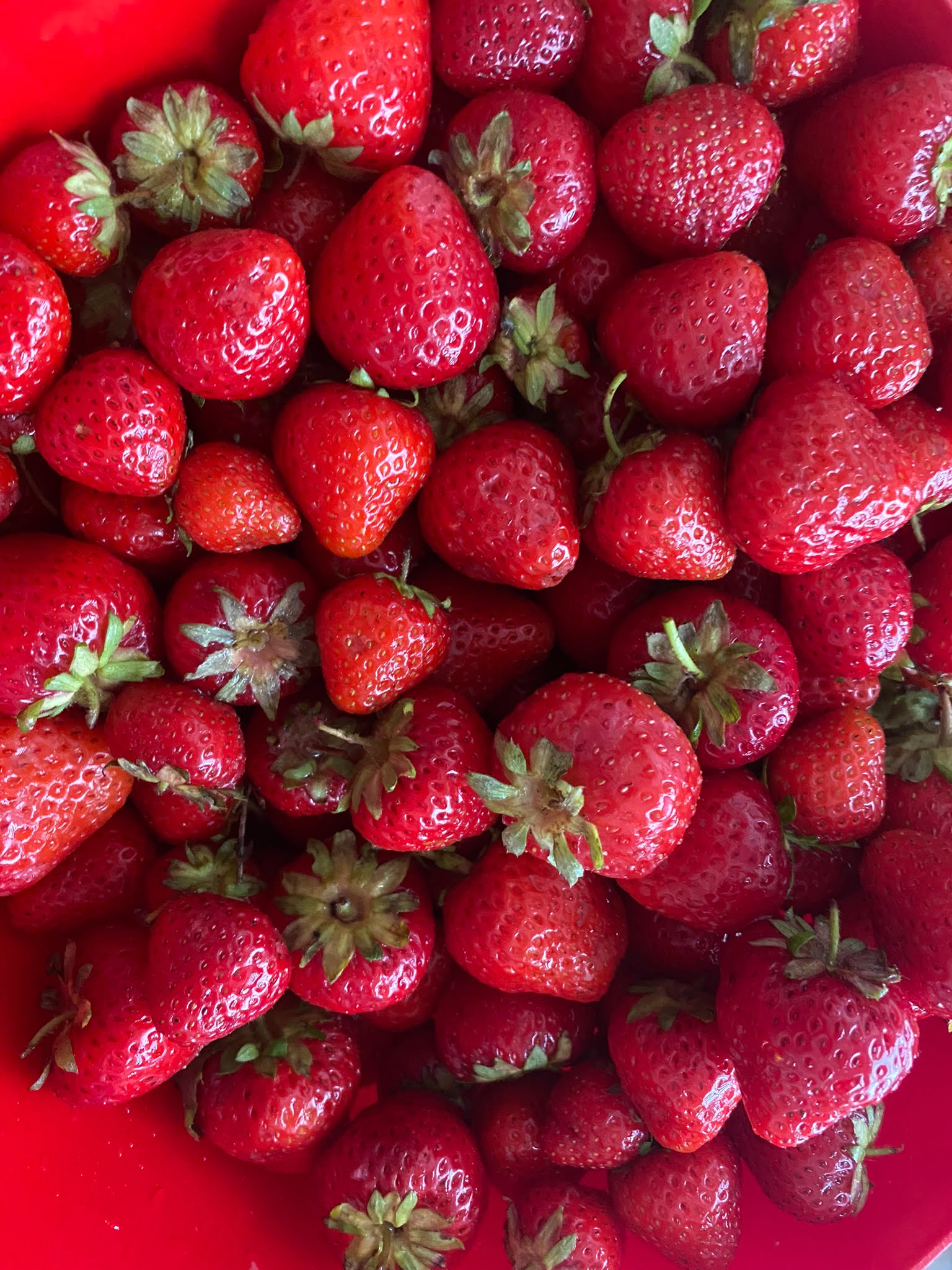 Pregătim căpșunile: le spălăm, le curățăm și le îndepărtăm frunzulițele.