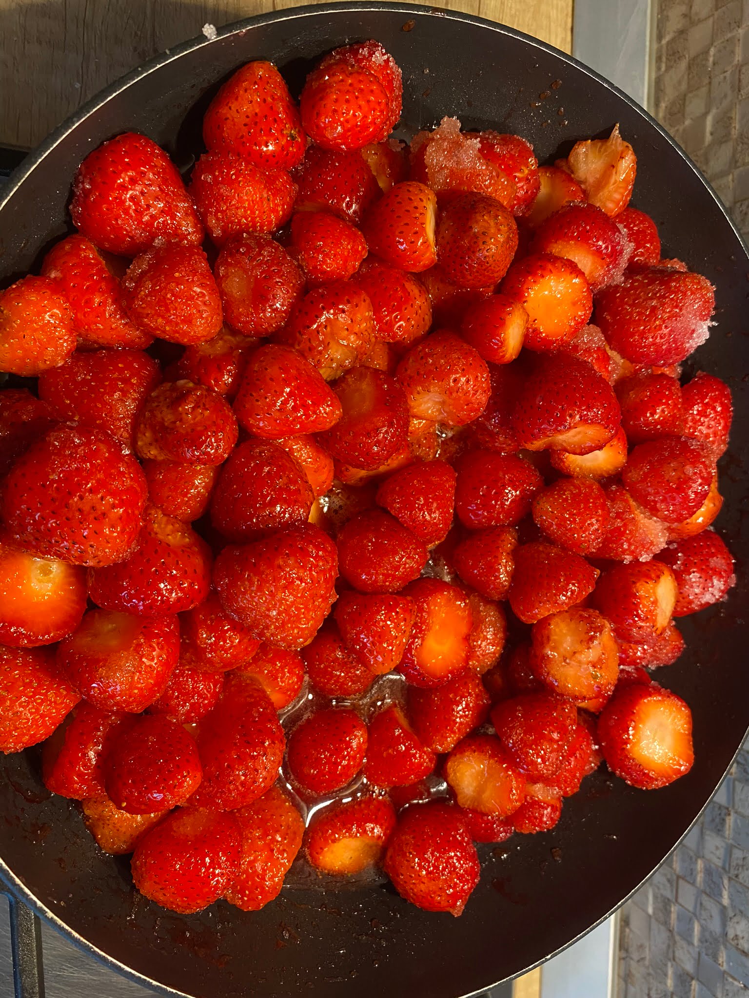 După ce le-am curațat bine, le-am pus în wok. Este de preferat să folosiți un vas cu gura cât mai largă. Eu fac gemul în wok de câțiva ani și mi se pare ideal.