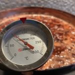 După 50 de minute de fierbere, am oprit gătirea. Siropul era trecut foarte puțin peste 100 de grade. Gemul ideal se obține la temperatura de 105 grade.
