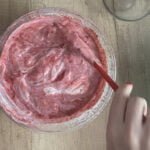 Adăugăm apoi piureul de fructe peste frișca bătută