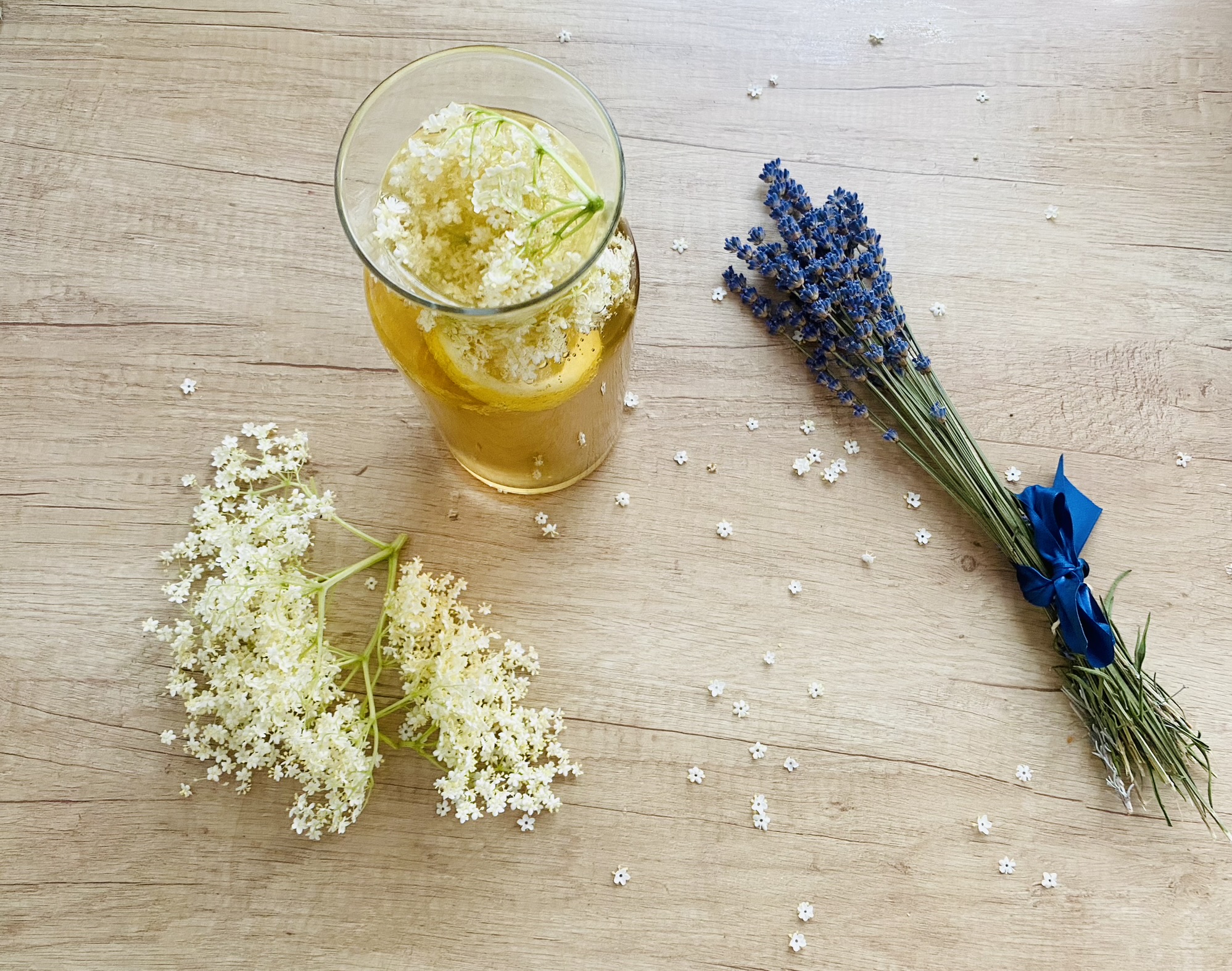 Când apa începe să fiarbă, adăugăm florile de soc și le fierbem pentru 10-15 min de clocot.